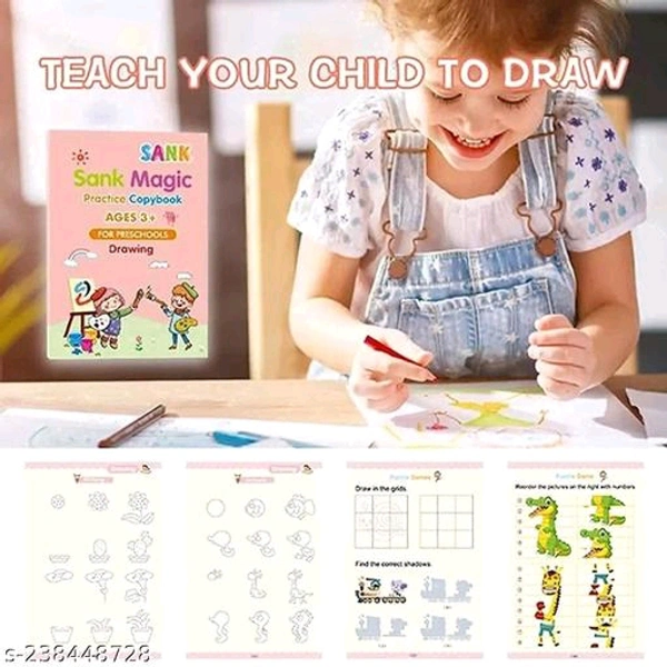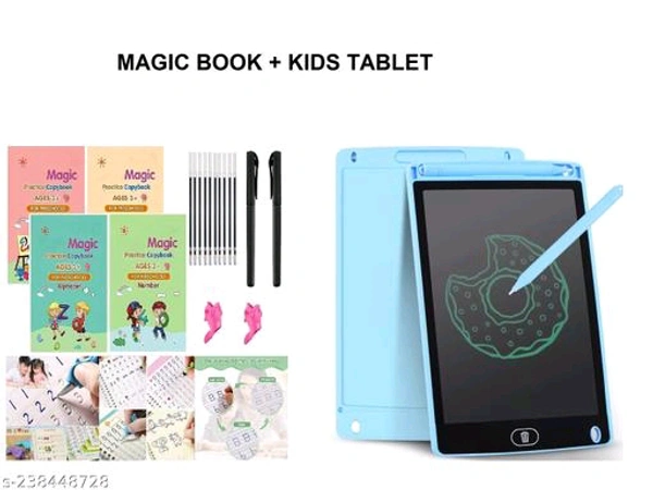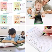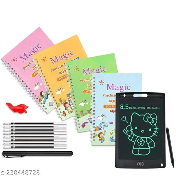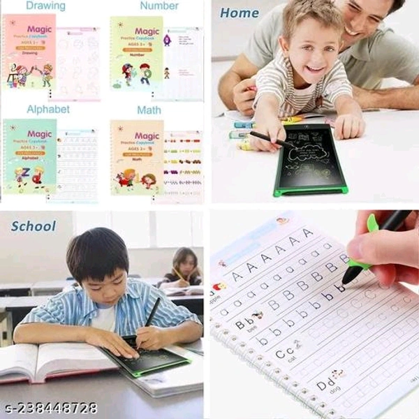 Name: Early Learning Sank Magic Practice Copybook and Writing Tablet (4pc Book-Drawing | Math | Alphabet | Number Practice Copybook + 10 Refill+ 1 Pen +1 Grip and 1pc Writing Tablet) Combo Set