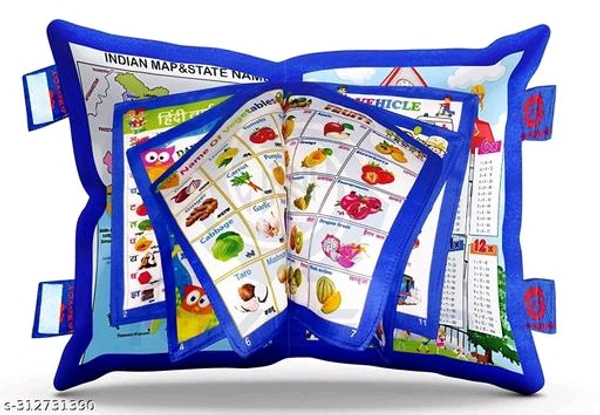 Learning Pillow With ABCD, Number, Colors, Birds, Shape, Vegetable, Fruit, Map, Month, Days, Vehicles, Body Chart, Hindi Varnamala , National Symbol Of India, Indian Forces, Total 14 page Leraning Cushion Contain Multiple Language: Hindi & English | Washable, Not Breakable and Durable Baby Pillow Cushion for Kids Baby Boy and Girls